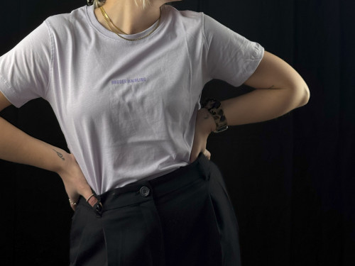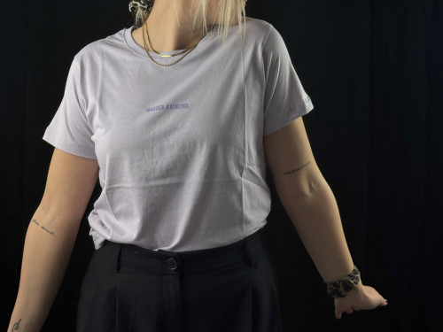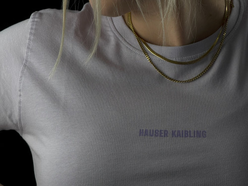 Dieses feminine T-Shirt in sanftem Lilaton überzeugt durch sein angenehm weiches Baumwollmaterial und eine moderne, leicht taillierte Passform. Der dezente Brustaufdruck „HAUSER KAIBLING“ in kontrastierendem Farbton verleiht dem Shirt einen sportlich-eleganten Look.