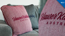 Dieser stilvolle Kissenbezug vereint modernes Design mit gemütlicher Alpenästhetik. Der strukturierte Stoff in Weinrot und die detailreiche Stickerei „HAUSER KAIBLING AUSTRIA“ machen ihn zu einem echten Blickfang.