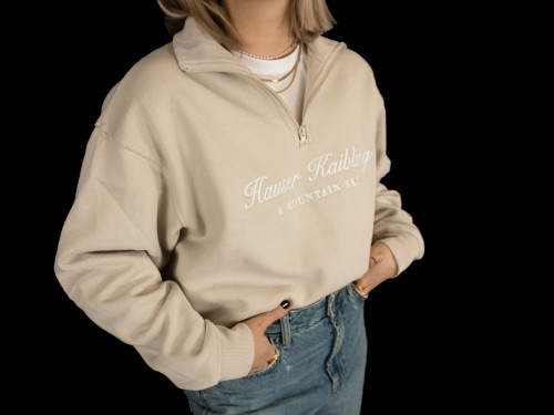 Der hochwertige, aufgestickte „Hauser Kaibling – 4-Mountain-Ski“ Schriftzug auf der Brust verleiht dem Pullover einen edlen alpinen Touch. Durch den praktischen Reißverschluss am Kragen lässt sich der Ausschnitt flexibel anpassen – von sportlich offen bis warm und geschlossen.